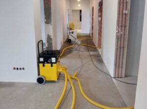 * Для эффективного просушивания требуется специализированное оборудование, которое может выдавливать влагу из пола и осушать воздух.